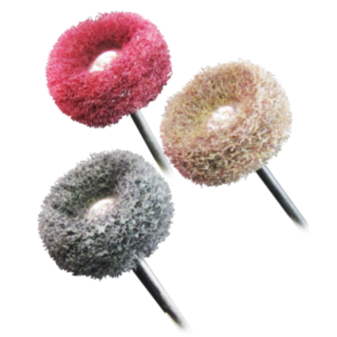 As escovas mini Scotch Brites da Keystone são fabricadas pela Hatho da Alemanha, apresentam uma durabilidade e confiabilidade superior. Disponíveis em três texturas (grossa, média e fina) oferecem um polimento e acabamento superior aos seus trabalhos. São excelentes para fazer o acabamento de protetores bucais, placas para bruxismo, aparelhos ortodônticos e próteses convencionais e impressas. Graças às diferentes texturas dos diferentes discos é possível fazer um desgaste e acabamento mais controlado e uniforme, desgastando e alisando a superfície dos materiais a base de resina e EVA.