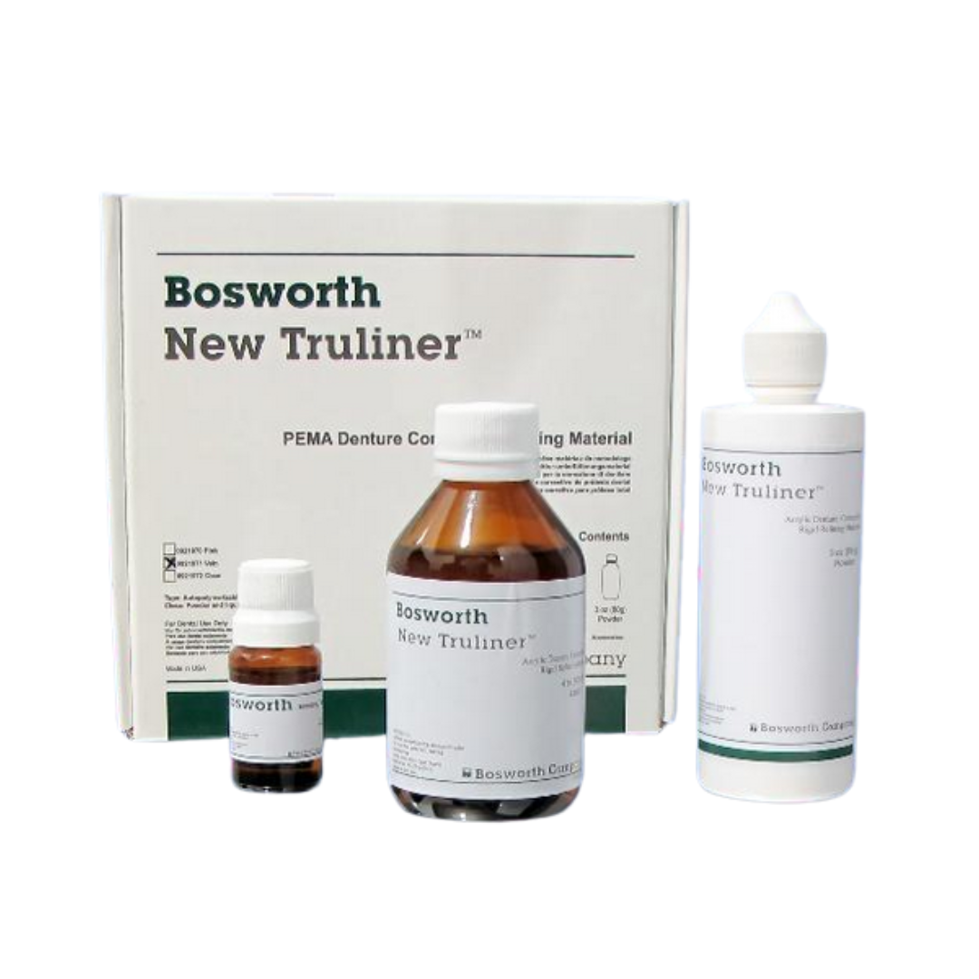 New Truliner é o mais avançado reembasador corretivo odontológico. Devido à sua fórmula suave assegura maior aceitação e cooperação por parte do paciente. O pó de New Truliner é tão fino que obtém uma consistência densa e não irá absorver odores, sabores ou manchas. Devido ao fato de ser tão fino, irá moldar melhor o tecido, resultando em uma ótima adaptação. New Truliner irá virtualmente misturar-se com qualquer prótese total. Cada pérola do acrílico tem a sua própria cor rosa. Devido ao fato do pigmento não ser adicionado posteriormente, no processo de fabricação do material, New Truliner não irá branquear ou sofrer descoloração. New Truliner é um acrílico de polimerização reversa, isto significa que polimeriza de dentro para fora.
