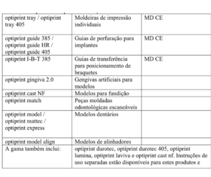relevantes do material para as resinas de impressão Optiprint podem ser baixados da